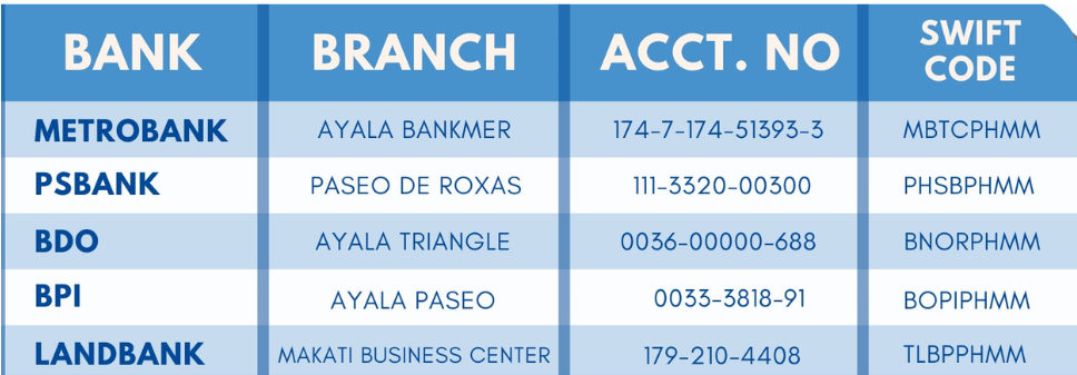 Visit your local bank or remittance center and wire the amount to either one of these accounts: